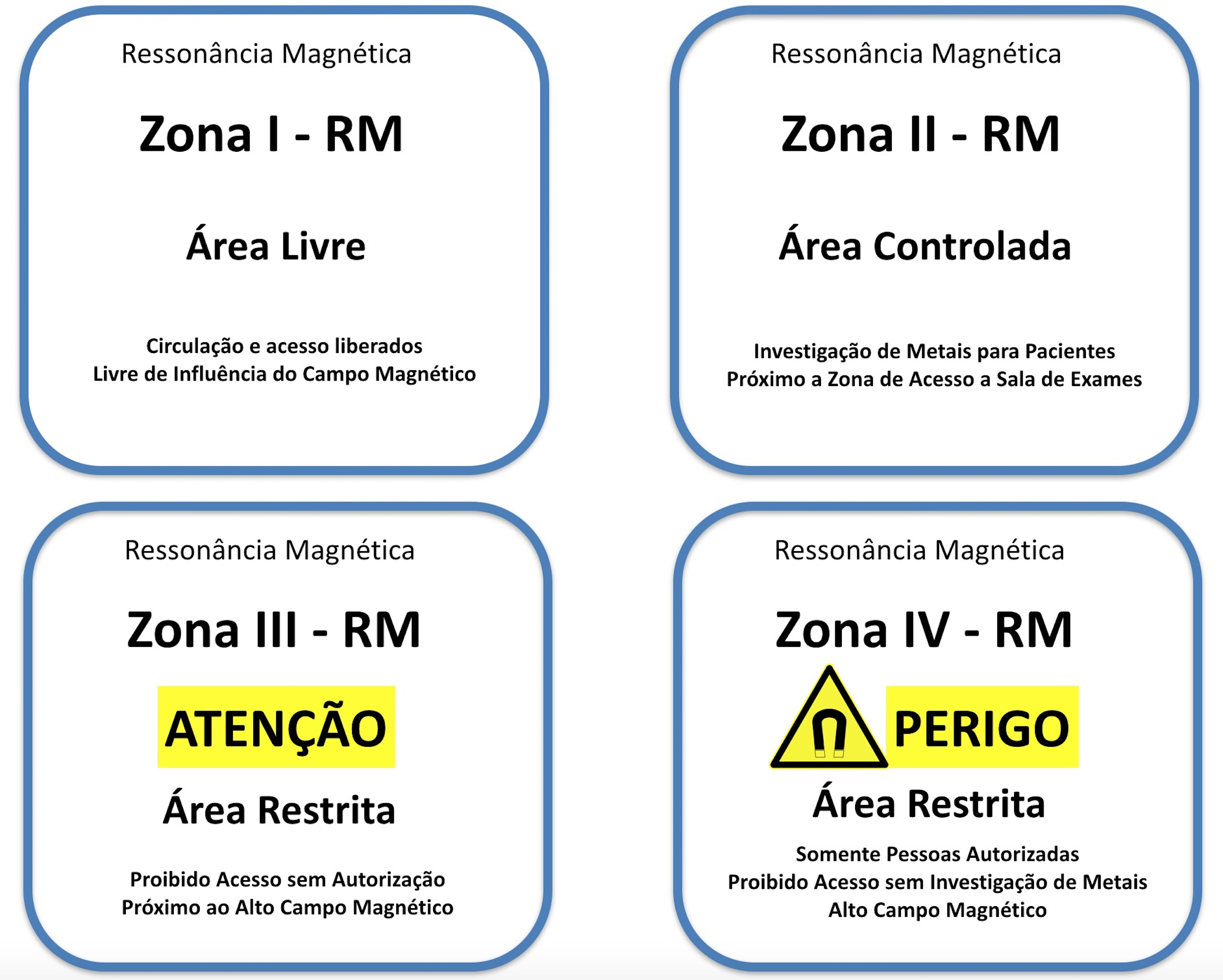 Apesar de o processo de obtenção de imagens por ressonância magnética (RM) não utilizar radiação ionizante e o método ser considerado seguro, existem muitos riscos associados à realização dos exames e ao ambiente de RM que já ocasionaram acidentes graves associados à morte de pacientes, indivíduos em geral e trabalhadores. Cabe destacar que o Brasil não tem legislação ou mesmo recomendação sobre aspectos de segurança em RM e é, portanto, dever das instituições e dos que trabalham garantir a segurança dos pacientes, acompanhantes, colaboradores e prestadores de serviço na sua relação com o ambiente de RM. Dessa forma, buscamos fornecer um conjunto de orientações práticas para a rotina de serviços clínicos ou de pesquisa em imagem por RM, de forma que se torne parte das políticas de segurança das instituições.